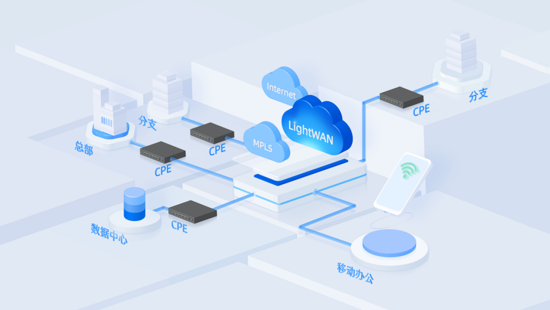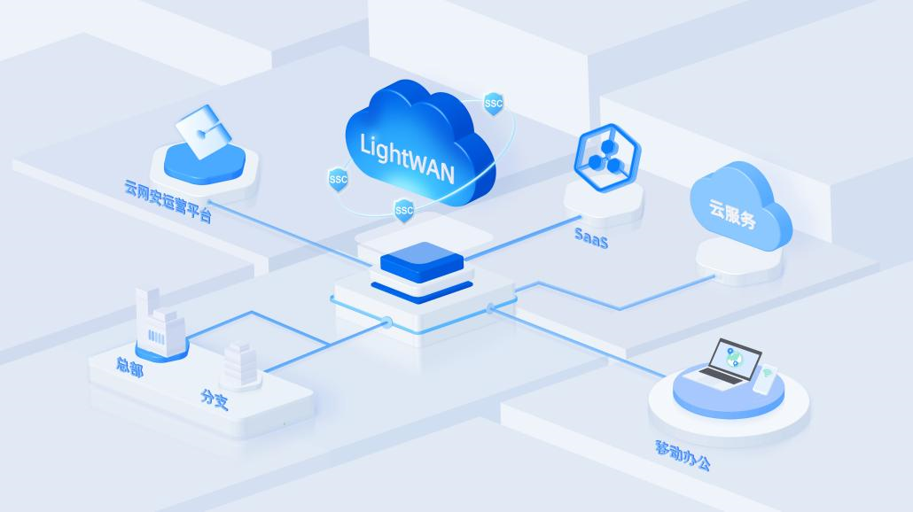 LightWAN 为客户提供高性价比、稳定、高效、灵活的企业组网方案,支持快速部署、扩建及迁移,可保障企业内部应用访问、视频会议、移动办公等场景的访问效率和体验,轻松实现企业网络可视化管理。